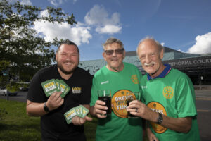 Lock Stock sponsor the annual beer festival, Northwich. Pictured Richard Warner of Lock Stock with Tim Henshall ;President elect of the rotary club and John Walton;Past president. Picture Mandy Jones